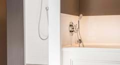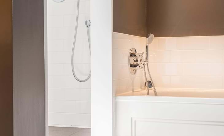 En-suite bathroom with separate bath and walk-in shower